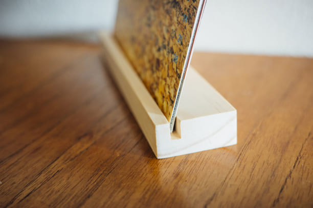 付属の木のスタンドに立てたとき、
