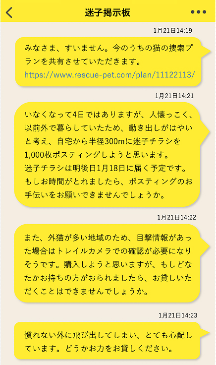 ●実際に迷子の捜索が始まると、飼い主さんは捜索に時間を取られるため、どうしても掲示板の更新が滞りがちになります。