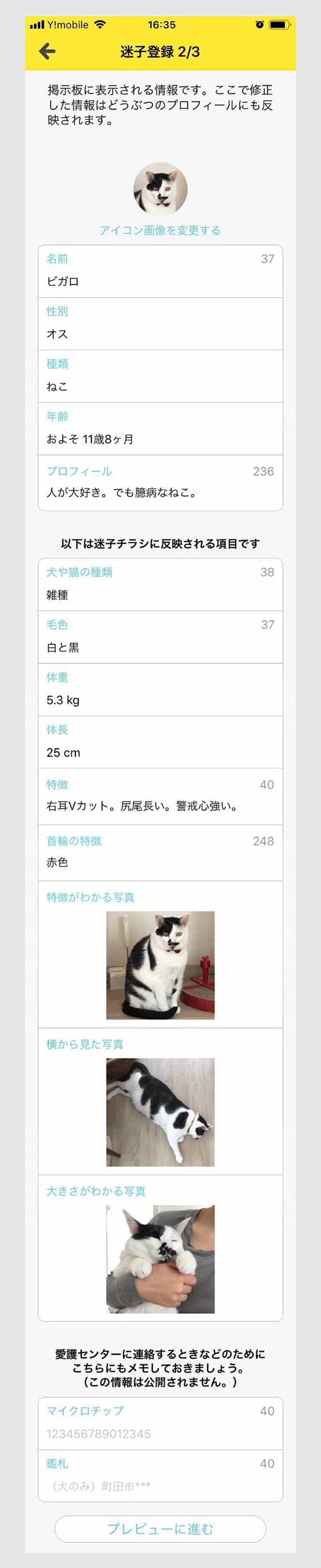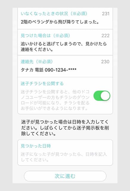 「プレビューに進む」を押し、迷子掲示板で公開する内容の確認をしてください。