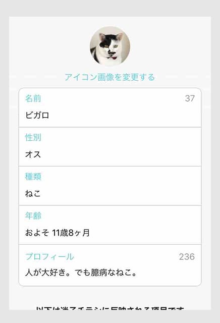 どうぶつプロフィールを編集