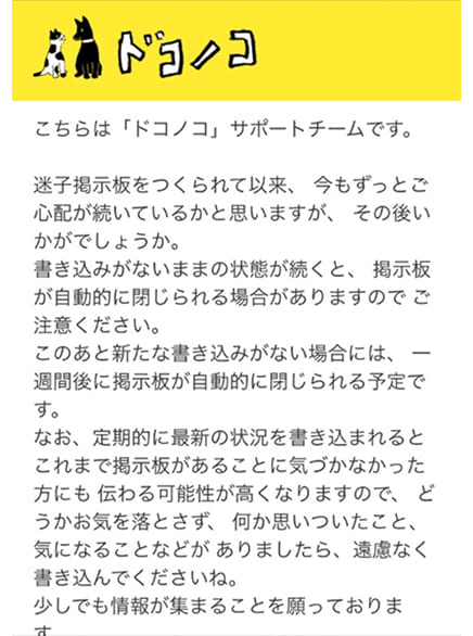 迷子掲示板を閉じる予告