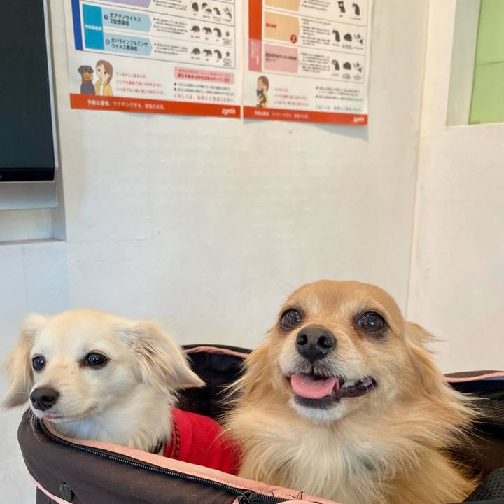 動物病院の待合室。病院が大好きなルークはニコニコです♪#チワックス #デカイ部