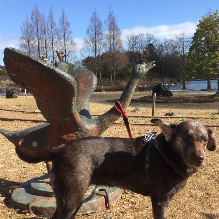【昼の公園にて】 飛ぶ練習🕊 耳の角度を 褒められる🦅 #ラブラドール#いぬ句