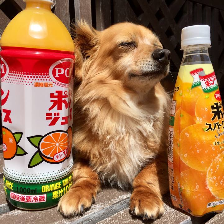 #チワックス#ミックス犬#いぬ句 せっかくの 頂き物にモノ申す🍊(ジュースかよ)