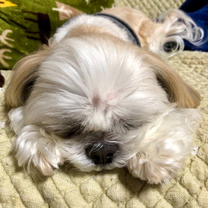 #シーズー #潰れ部 お腹いっぱい食べて#二度寝部😴 雨☔️風🍃強いよ💦