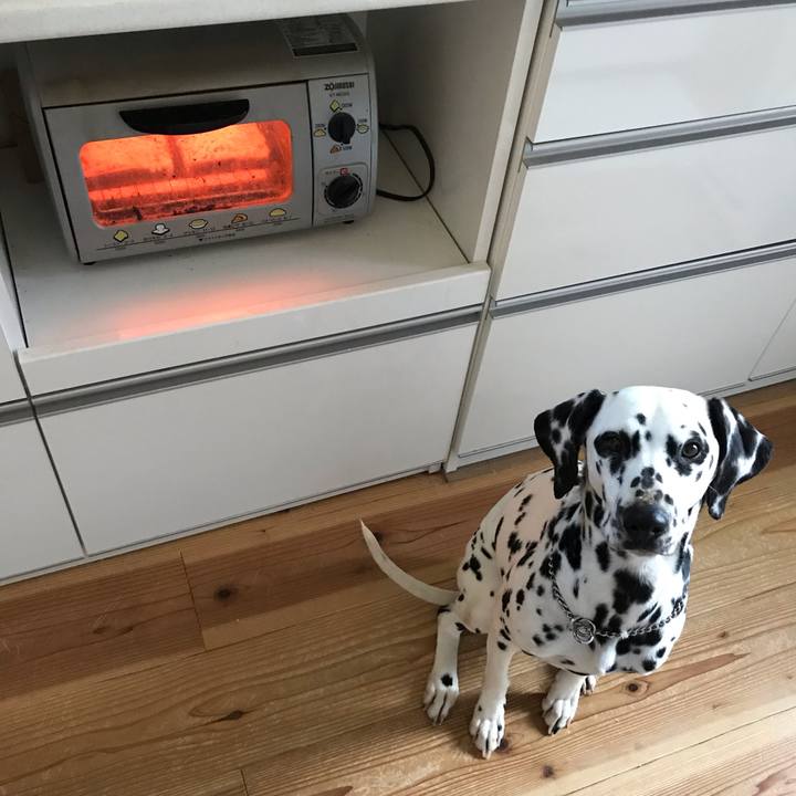 もうすぐピザパンが焼けまーす🎀 #ダルメシアン #てん #おしらせ