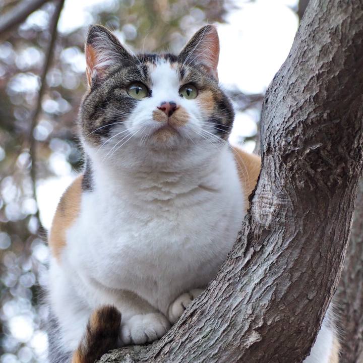きゃわわのわ〜😍💕 #牛小屋猫 #三毛猫 #木登り
