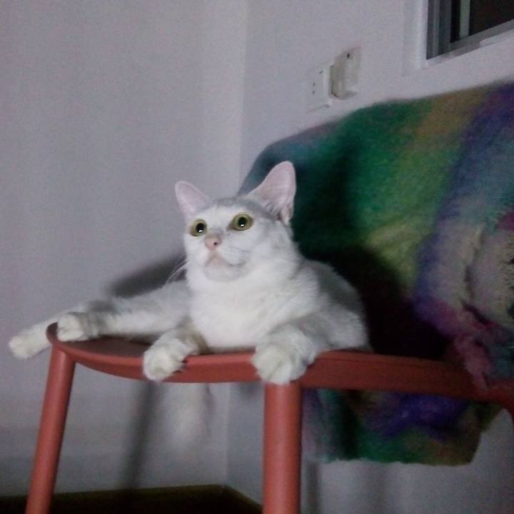 家の外は川になり、かれこれ2時間停電中(。>_<。) 大福は光に反応して楽しそ♥