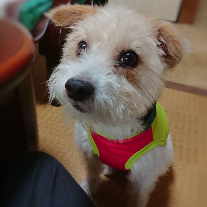実家のおかんに美味しいものいっぱい貰って、うれしー♪ #ジャックラッセルテリア