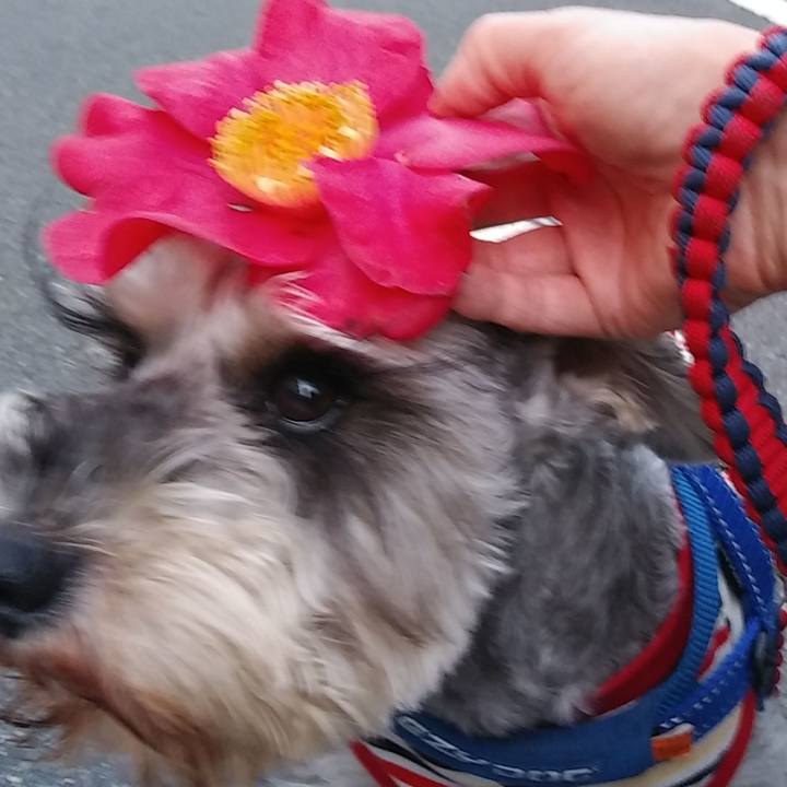 椿頭に乗せるの? #シュナウザー #花活隊 #失敗写真
