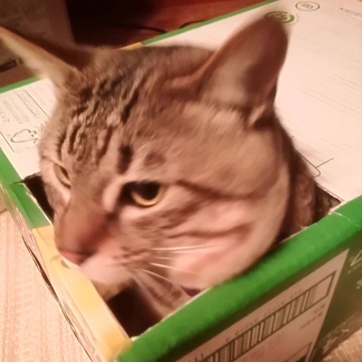 #キジトラ #保護猫 「ふっ!箱の中のクリスピーは全ていただいたぜ!」