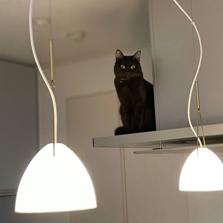 台所奉行、朝餉の進捗を検分中💦 #おされさん倶楽部 #高所見守り隊 #猫の日