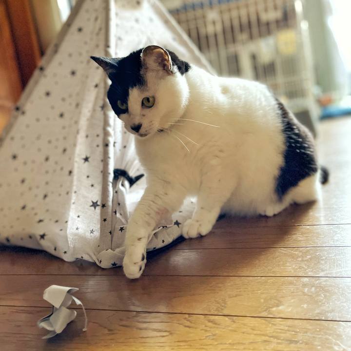 狙ってる😺 #ブラックジャック柄 #保護猫 #YYバンド