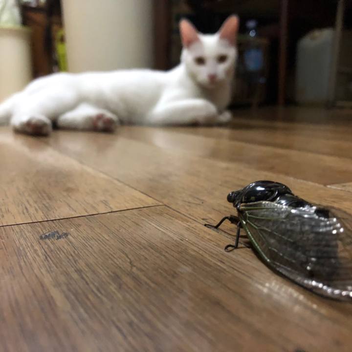 蝉あそびも そろそろおしまい #猫の日 #夏のしっぽ #白猫 #チーム白猫