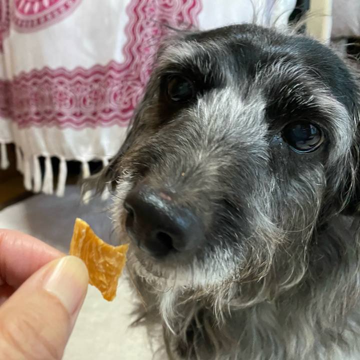 朝ごはん食べる前の儀式😆#ミックス犬 #雑種犬 これ食べてからじゃないとダメ🐶