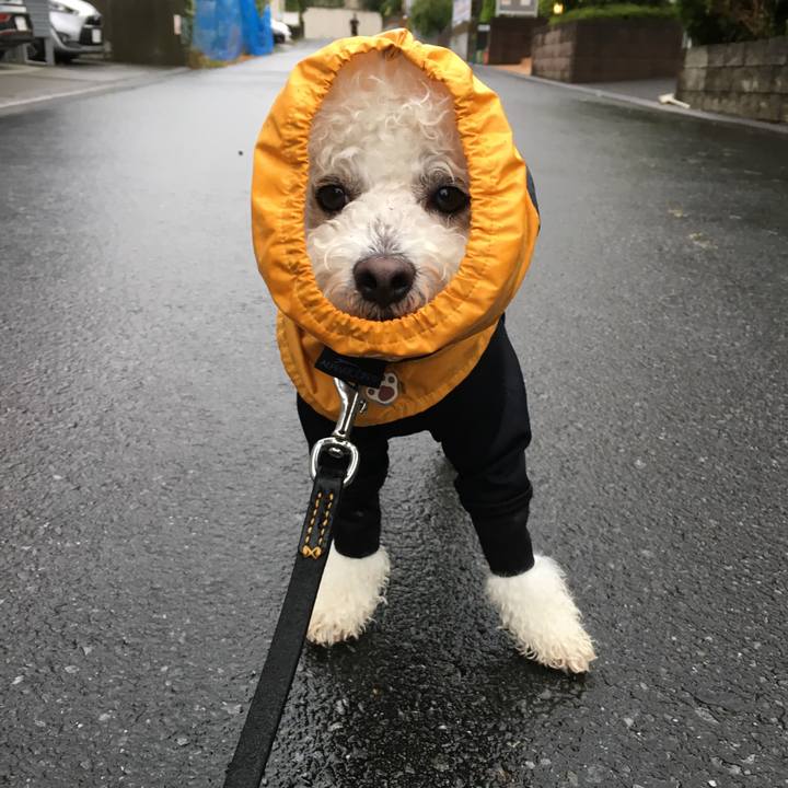 昨日の#朝んぽ 最近の小雨の#定番 😁 #ビションフリーゼ #スヌード