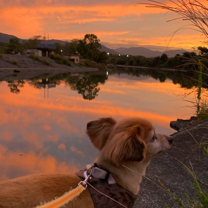 のんびり夕焼け見ていたら暗くなってじまった🐾💦 #チワックス#ミックス犬#さんぽ