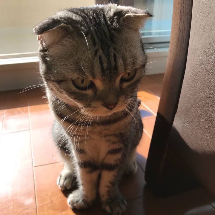 あたち、おててを合わせると顔がでてくるのよ#スコティッシュフォールド#秘密