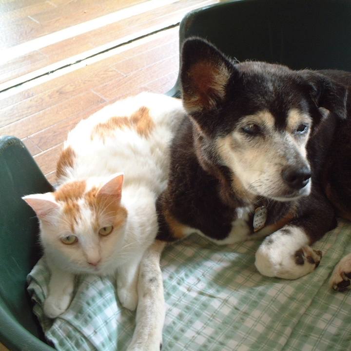 2002年9月 #白茶 マロンと#雑種犬 セッタ#仲良し犬猫