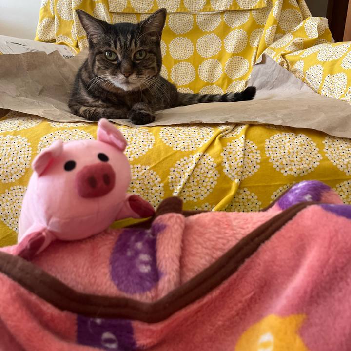 そろそろね洗ってほしいニャこのカバー #ねこ句#さくら#キジトラ#猫ベッド