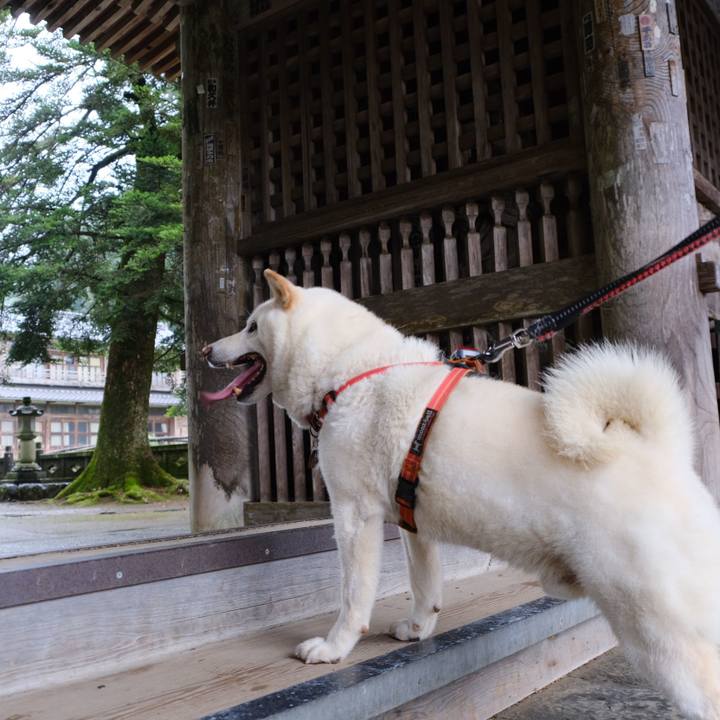 ロン)目ぇ合わさんよう🐾 #柴犬#白柴#西国三十三所#巡礼#谷汲山#仁王門
