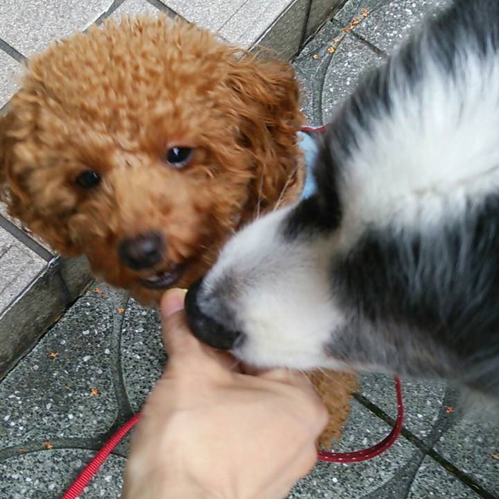 お兄ちゃん、それりんの~(@_@) #おやつ #トイプードル #ボーダーコリー