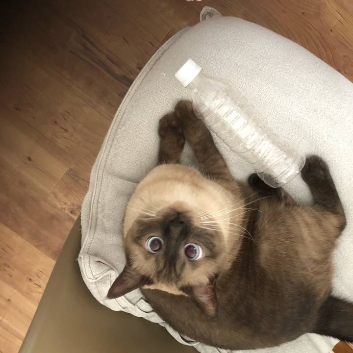 これ、転がして椅子から落とすのが楽しいにゃん。