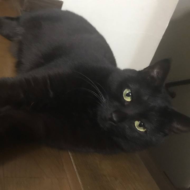 またこんな 階段際で 寝ているね #黒猫 #ねこ句