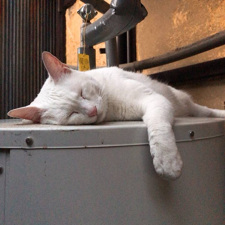 ん〜あたちの温水器♡ここでかれこれ6時間…💤 #白猫 #チーム白猫 #お昼寝