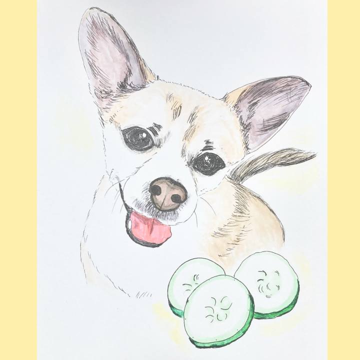お誕生日おめでとう🎉 れんげちゃんに🥒のプレゼントだよ #イラスト #チワワ