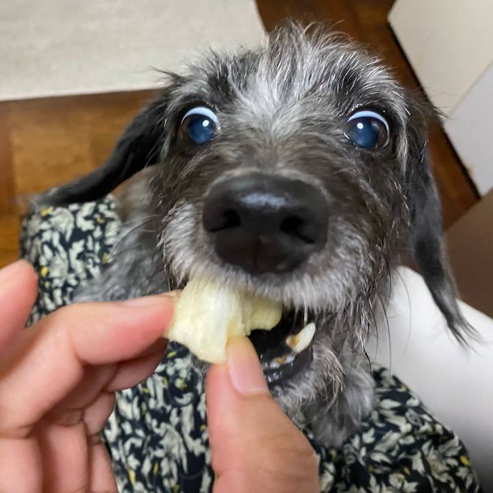 ワーイ😍リンゴだ🍎やったー❣️ #ミックス犬 #雑種犬 近い近い😁