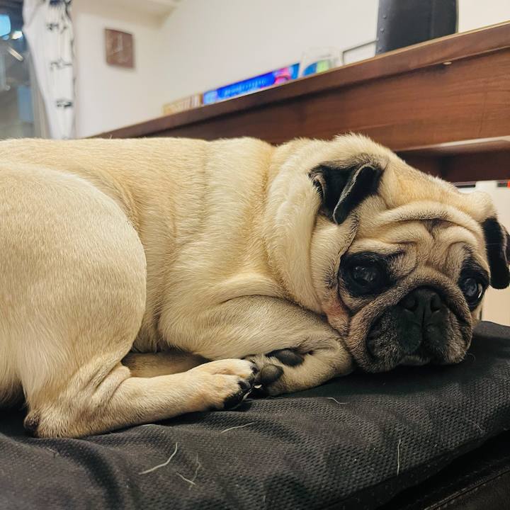 飼い主の仕事を見守るむちむちおばさん #パグ #晩御飯はよくれ