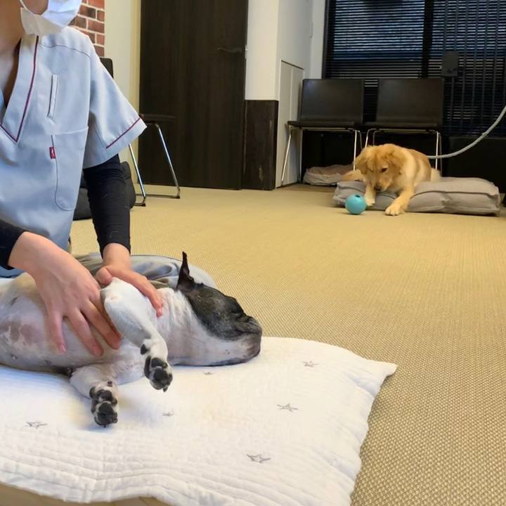 乱入予防に繋がれたけど凹まない長政#フレンチブルドッグ#ゴールデンレトリバー