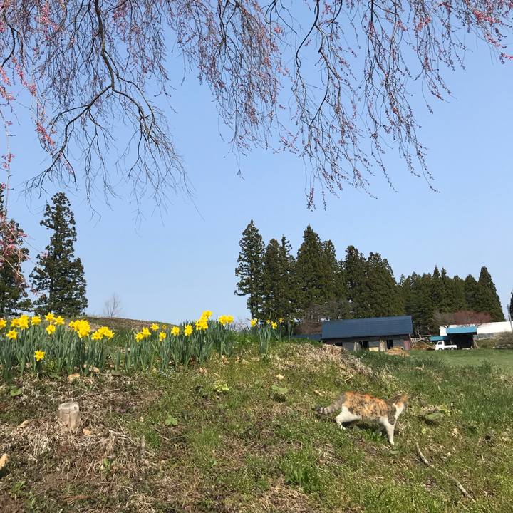 何か見つけたようです👀 #牛小屋猫 #春 #三毛猫