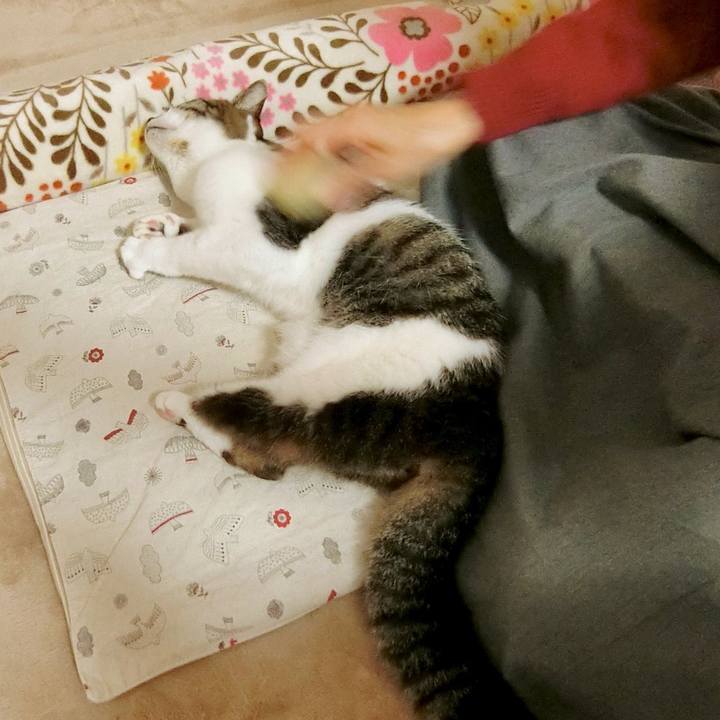 猫和み春の嵐は窓の外 #ねこ句 #ブラッシング 手がグーパーしちゃうサヤです