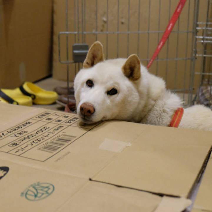 ロン)呼んどいてなんもないん⁉ #柴犬#白柴#振り返る#やる気#ゼロ#あご乗せ