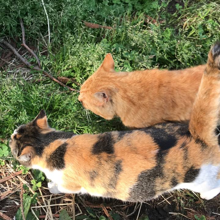 今日もなかよし💕 #牛小屋猫 #茶トラ #ボス猫 #三毛猫 #仲良し