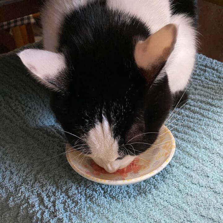 お客さん疲れを癒すマグロのたたき♡🐟 #ハチワレ #白黒 #うまうま