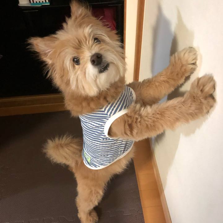 本日の おやち🍩ちょ〜だいアピールは 壁をカリカリスタイル🌀🐶 やめて〜っ💦💦😱