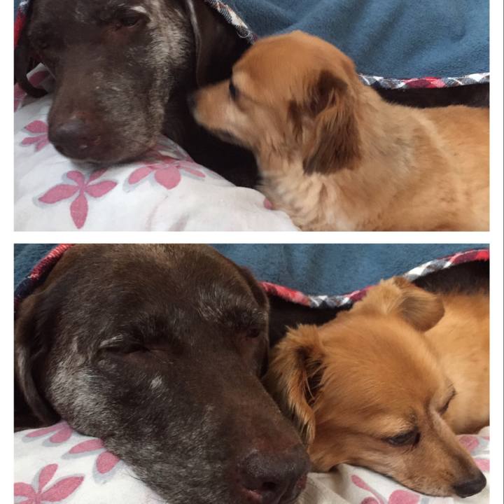 #ラブラドール#チワックス カノンが安静にしたくても 福助が暑苦しく世話をやく🙄