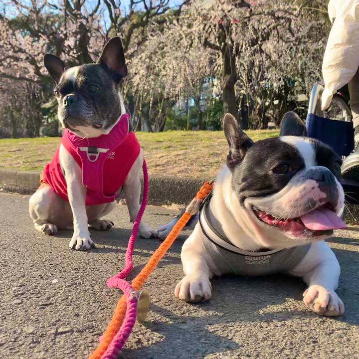 春めく午後#フレンチブルドッグ#お友達#仲良し#さんぽ#昼んぽ#梅#春#駒沢公園