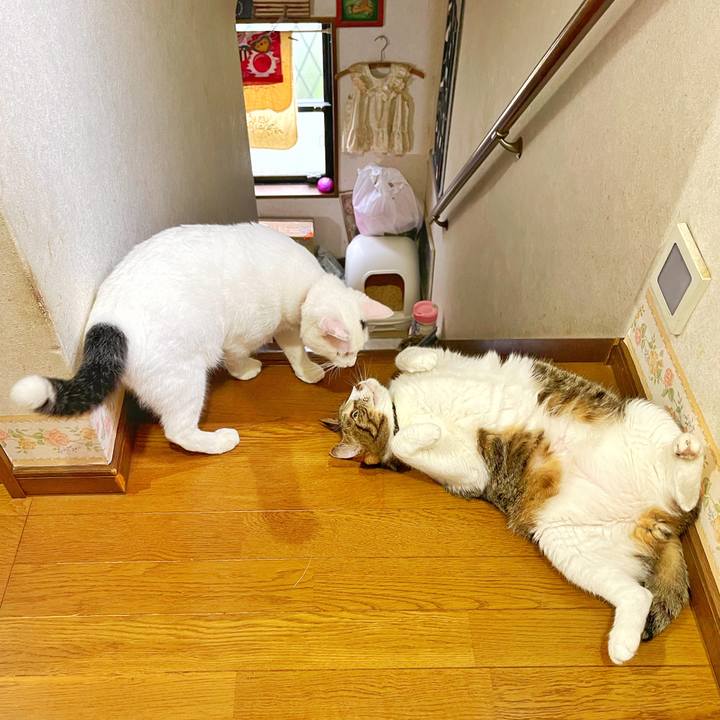 兄と妹の挨拶❣️ #キジトラ友の会 #マト部幼稚園猫組 #YYバンド
