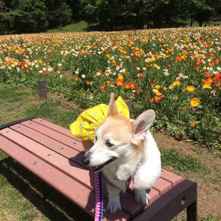 2018.4.28 ニッキー12歳 ポピーのお花畑 この日は暑かったようです☀️