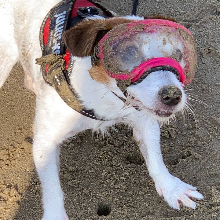 メイちゃん ゴロスリしたら何も見えないね😓 #ゴーグル嫌いだ🐶