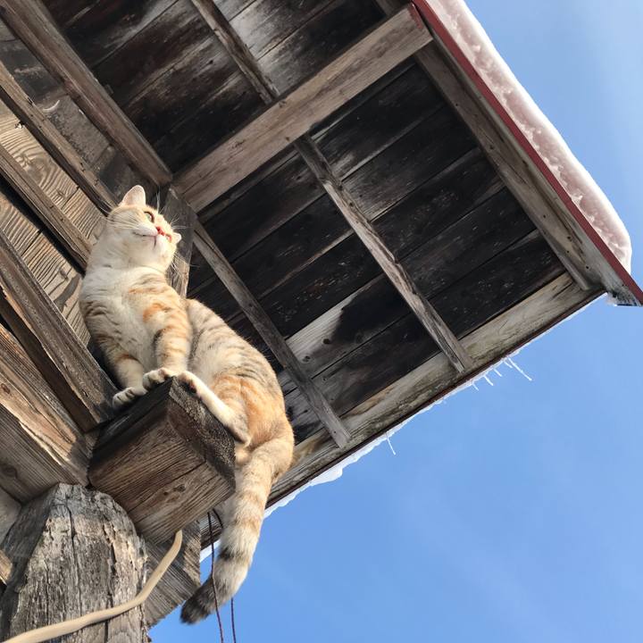 登ったにゃ🎶 #三毛猫 #雪 #やる気 #ミケコレ #青空
