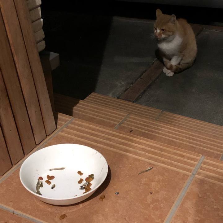 5時 たれちゃん、まだいた。車の下で寝てたっぽい。 #茶虎たれぞう