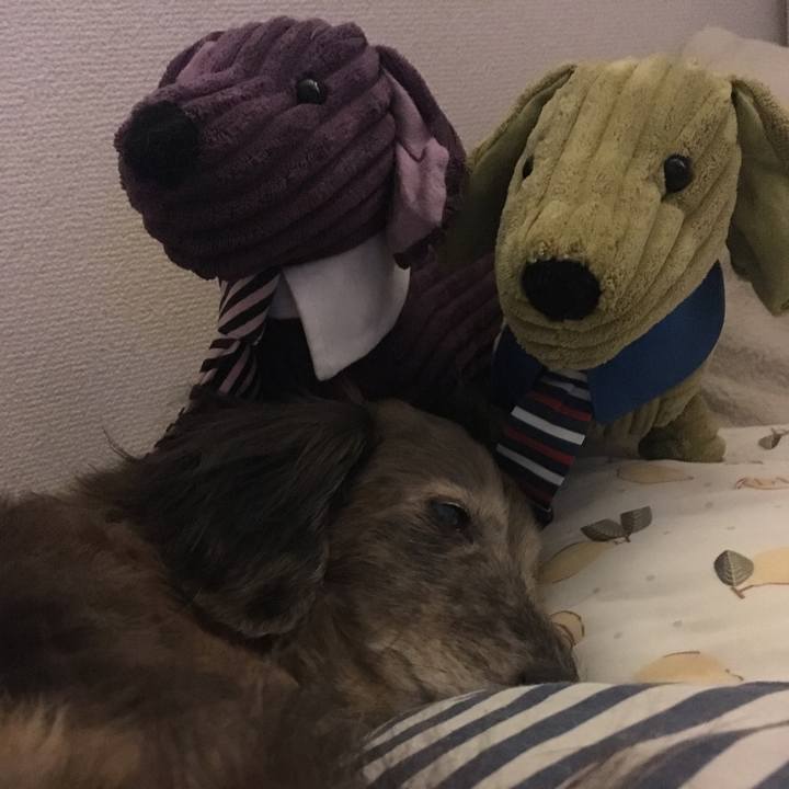 恐らく今頃の予想… おちこむなよ💚 げんきだせよ💜 かいぬしなんてきらいだー🐶