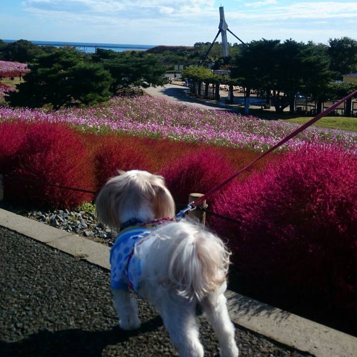 #シーズー #潰れ部 #紅葉 去年の秋🍁コキアと秋桜🌸