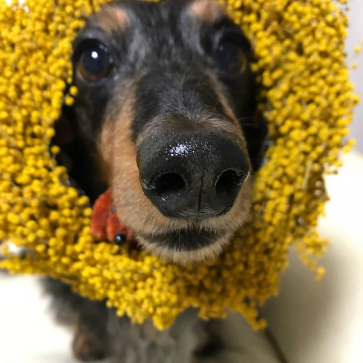 #ミモザ のリース番外編#突破 #ミニチュアダックス#ドコノコダックスバンド