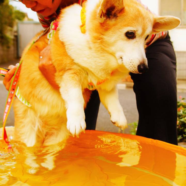 夫カメラ/年に1度のプール⑤ 足からちゃぽん💦 #コーギー #プール